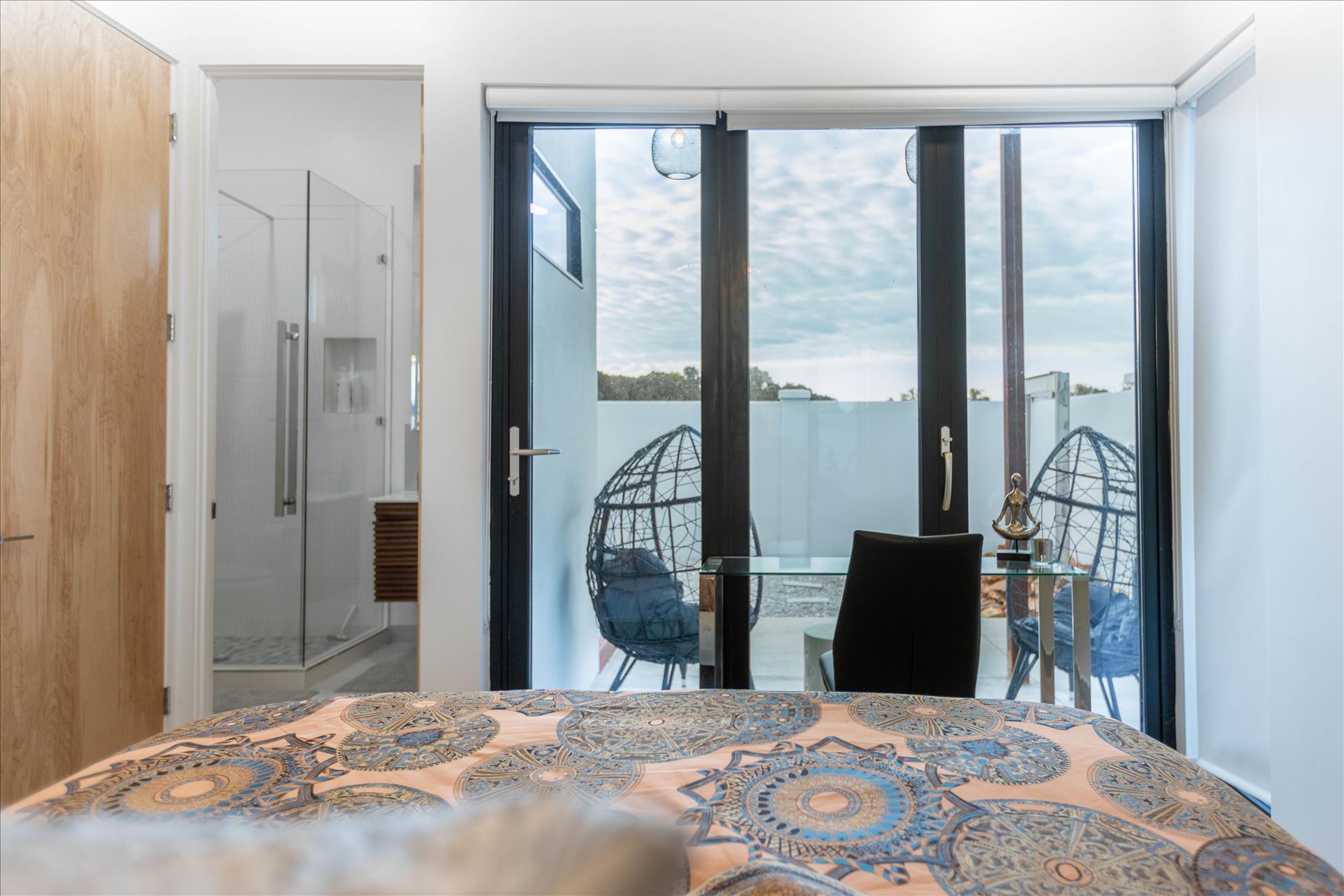 There's plenty of space to refresh and recharge in each of the two spacious bathrooms. Feel like royalty when you step foot onto the mosaic tiles of the European style shower. The vaulted ceiling and skylight, paired with a relaxing rainfall showerhead, ensures you leave the experience feeling invigorated and fresh. Fluffy towels, blow dryer, and shower toiletries for villa use will be provided. Each bathroom allows ample room to get ready for an exciting day of adventure at the lake or at one of the many trails perfect for hiking and biking.
